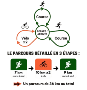 - 3ème boucle = vélo 10 kms